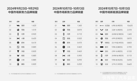 自7月上旬达成40万台以来,零跑汽车近期在国内商场的销量收货终点令东说念主耐心——8月、9月销量连破3万台、连创历史新高,1-9月累计销量超17万台,执续夯实由零跑重塑的新势力“理问零”前三新形态,况兼在9月临了一周单周销量破万;进入10月,零跑热销势头执续,最新周销量再度超干扰界跃居第二,更在新能源全品牌中超过特斯拉,和比亚迪、五菱、理思共同位居全品牌四强。
