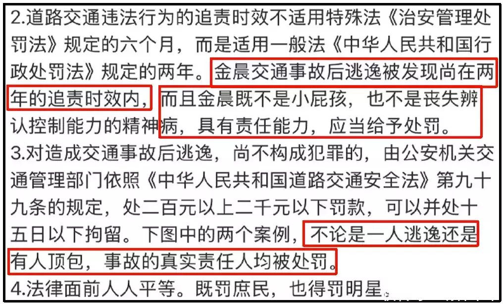 说一千谈一万,网友并不神志金晨怎样发生的事故,而是神志金晨看成明星,在闯祸逃遁顶包的情况下,是否会按照以往案例,时时进行管理,明星身份不是挡箭牌,更不该有特权!