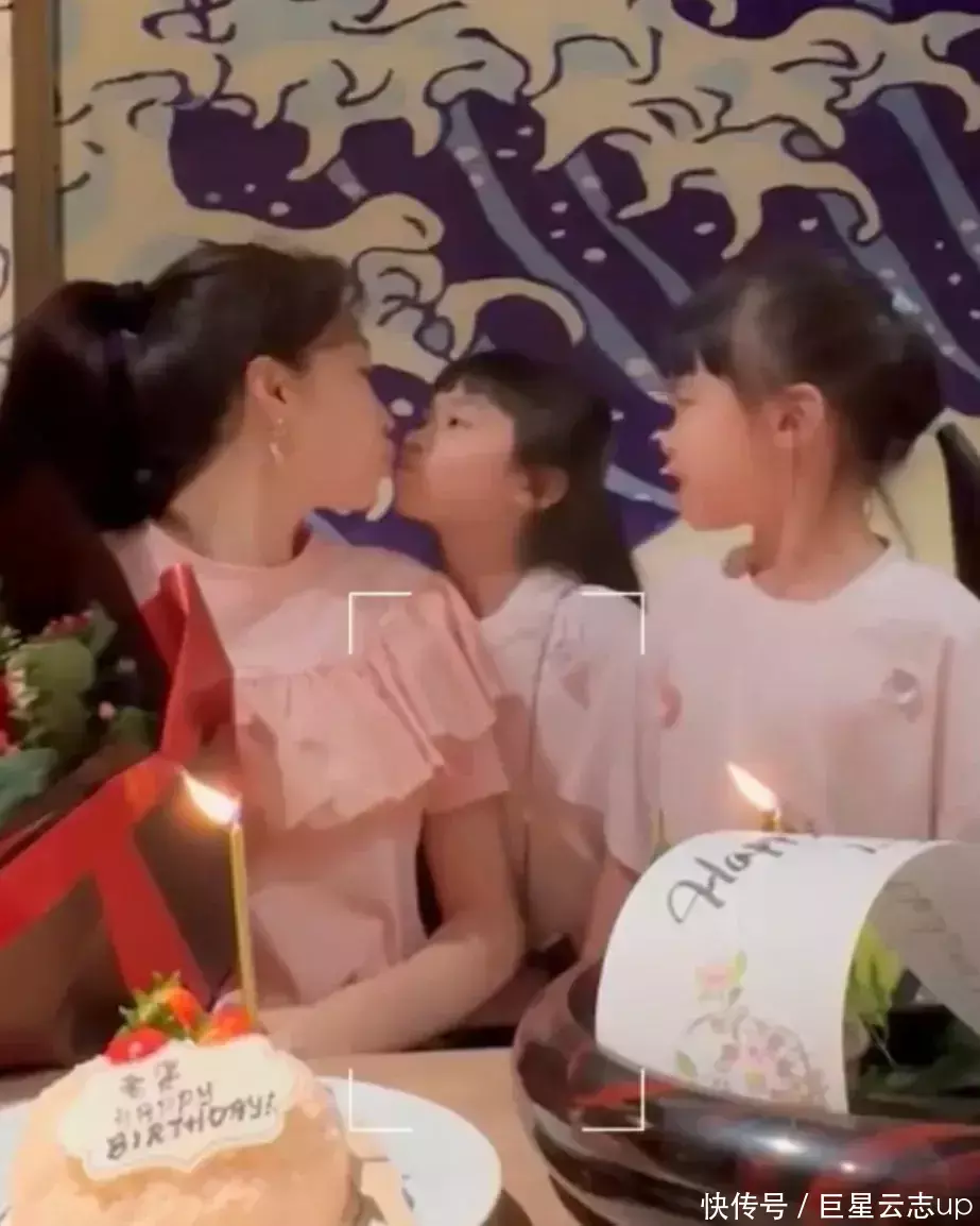 一双6岁的双胞胎男儿也陪同在姆妈身边,姐妹俩还轮替给姆妈奉上香吻,先是妹妹Lyvia,然后是姐姐Kayloy。固然,确定还少不了老公郭可颂啦。